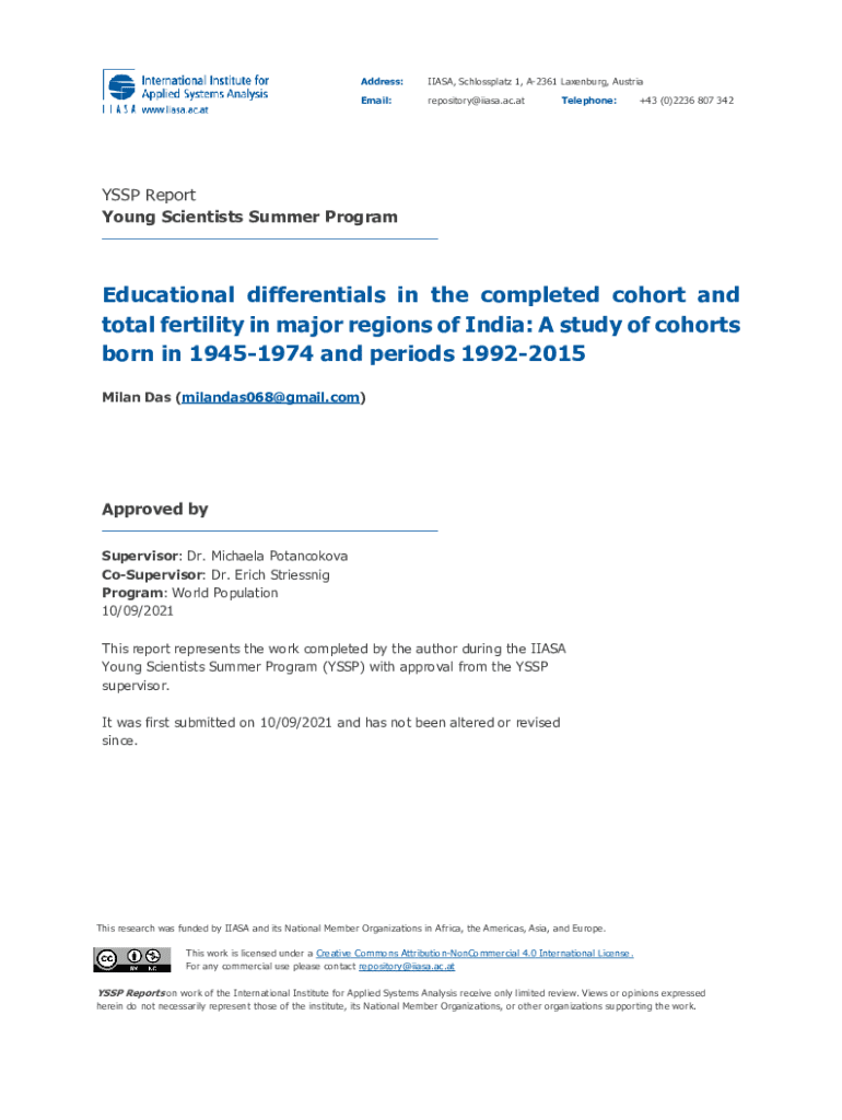 This report presents an analysis of the relationship between women\'s educational attainment and fertility rates in India, examining cohort and period fertility from 1945 to 2015. The study highlights