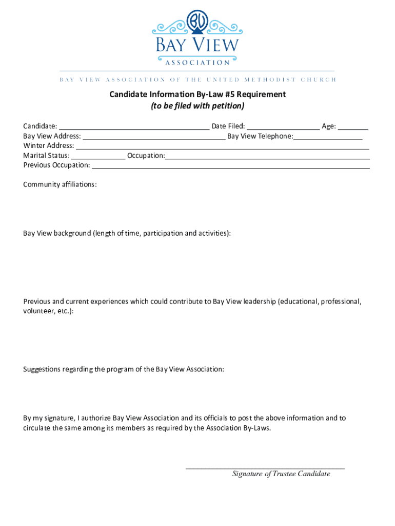 Get the free Candidate Information by-law #5 Requirement