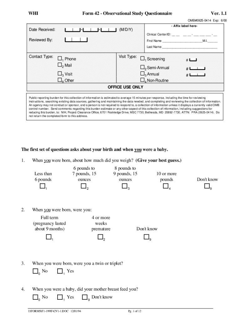 Get the free Form 42 - Observational Study Questionnaire