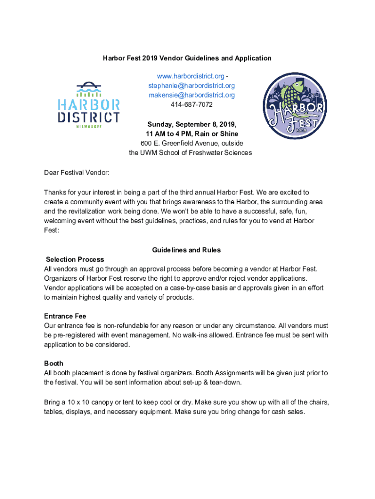 Get the free Harbor Fest 2019 Vendor Guidelines and Application