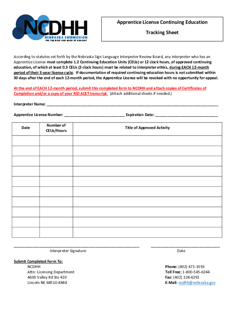 Get the free Apprentice License Continuing Education Tracking Sheet
