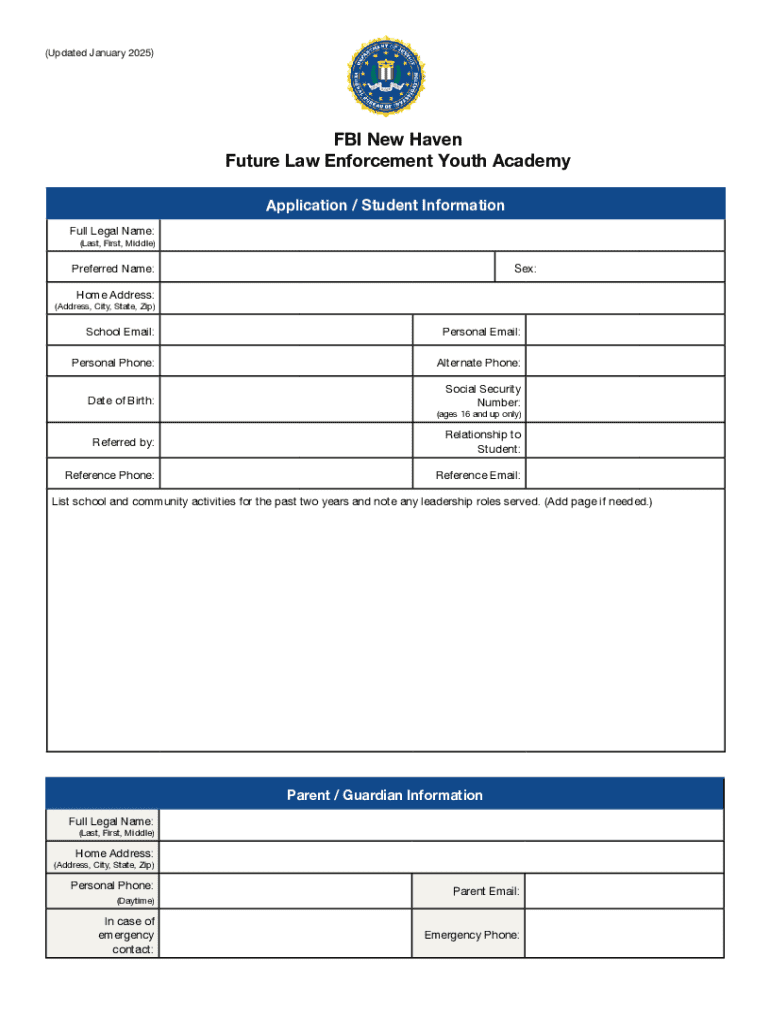 Get the free Fbi New Haven Future Law Enforcement Youth Academy Application