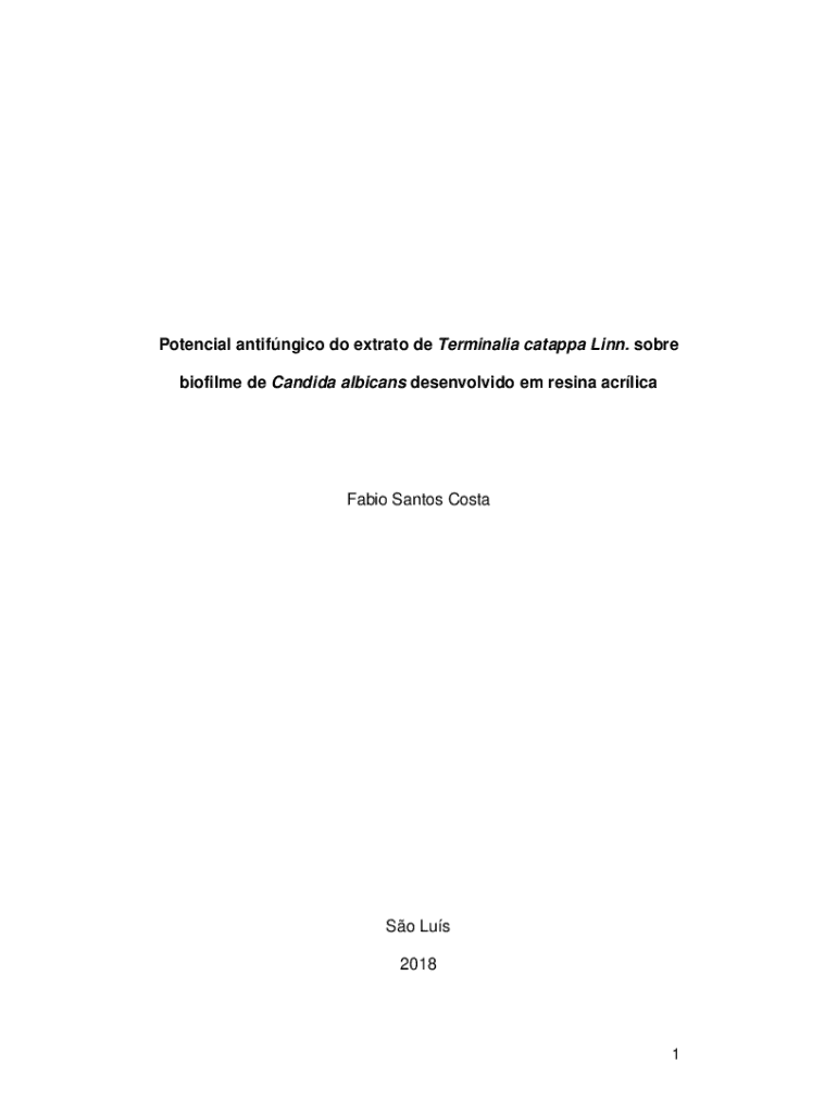 Potencial antifngico do extrato de Terminalia catappa Linn. sobre biofilme de Candida albicans desenvolvido em resina acrlicaFabio Santos CostaSo Lus 20181Fabio Santos CostaPotencial antifngico do