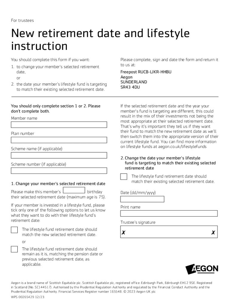 For trusteesNew retirement date and lifestyle instruction You should complete this form if you want: 1. to change your members selected retirement date, or 2. the date your members lifestyle fund