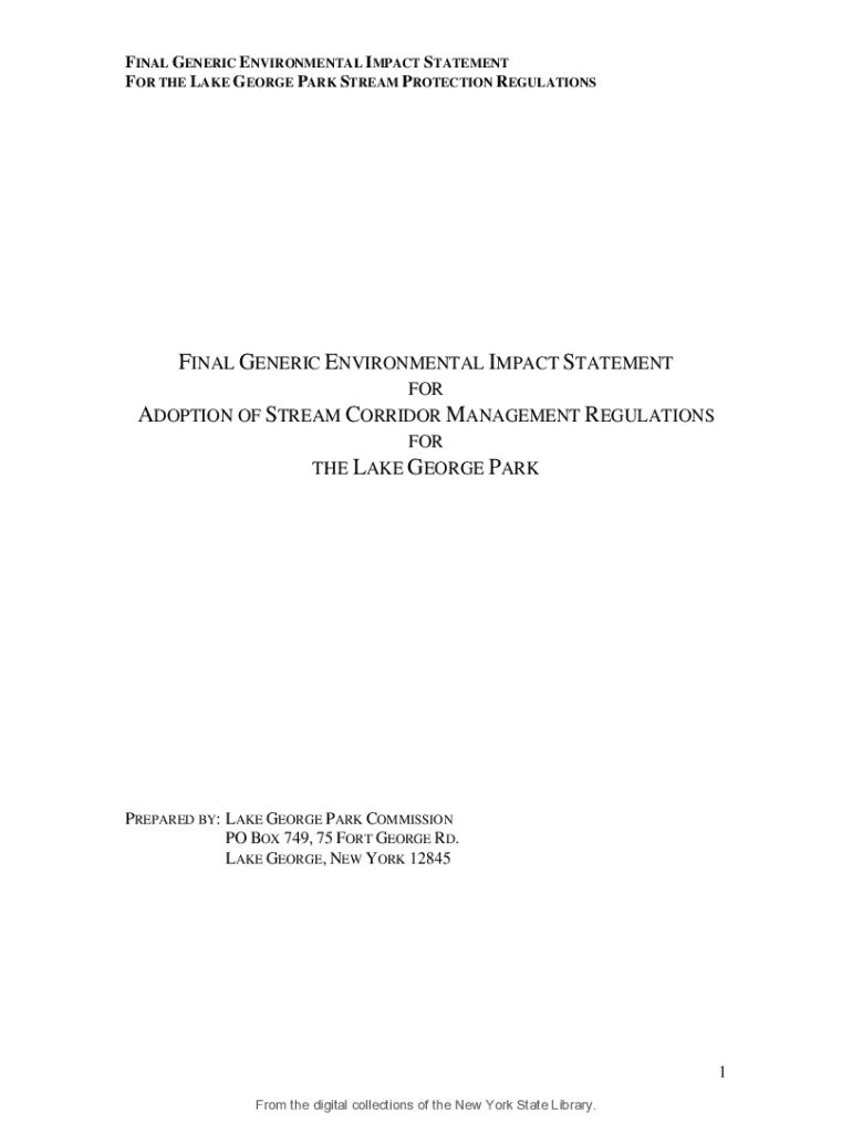 Get the free Final Generic Environmental Impact Statement for the Lake George Park Stream Protect...
