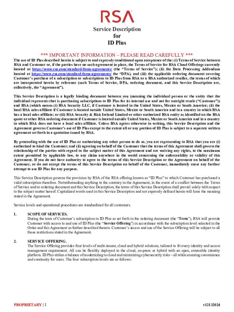 Service Description for ID Plus *** IMPORTANT INFORMATION PLEASE READ CAREFULLY ***The use of ID Plus described herein is subject to and expressly conditioned upon acceptance of the: (i) Terms of