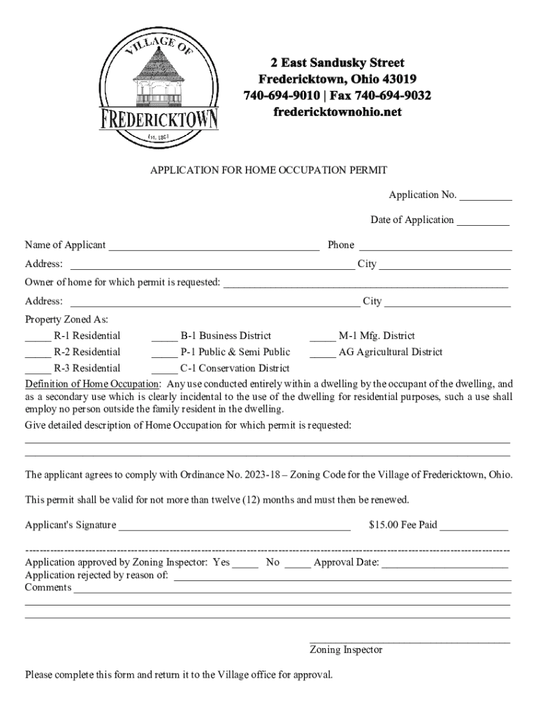 Application For Home Occupation is not the form you're looking for?Search for another form here.
