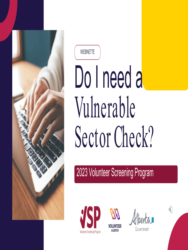 This document provides information about the Vulnerable Sector Check (VSC) and the Volunteer Screening Program (VSP) offered by Volunteer Alberta in partnership with the Government of Alberta. It