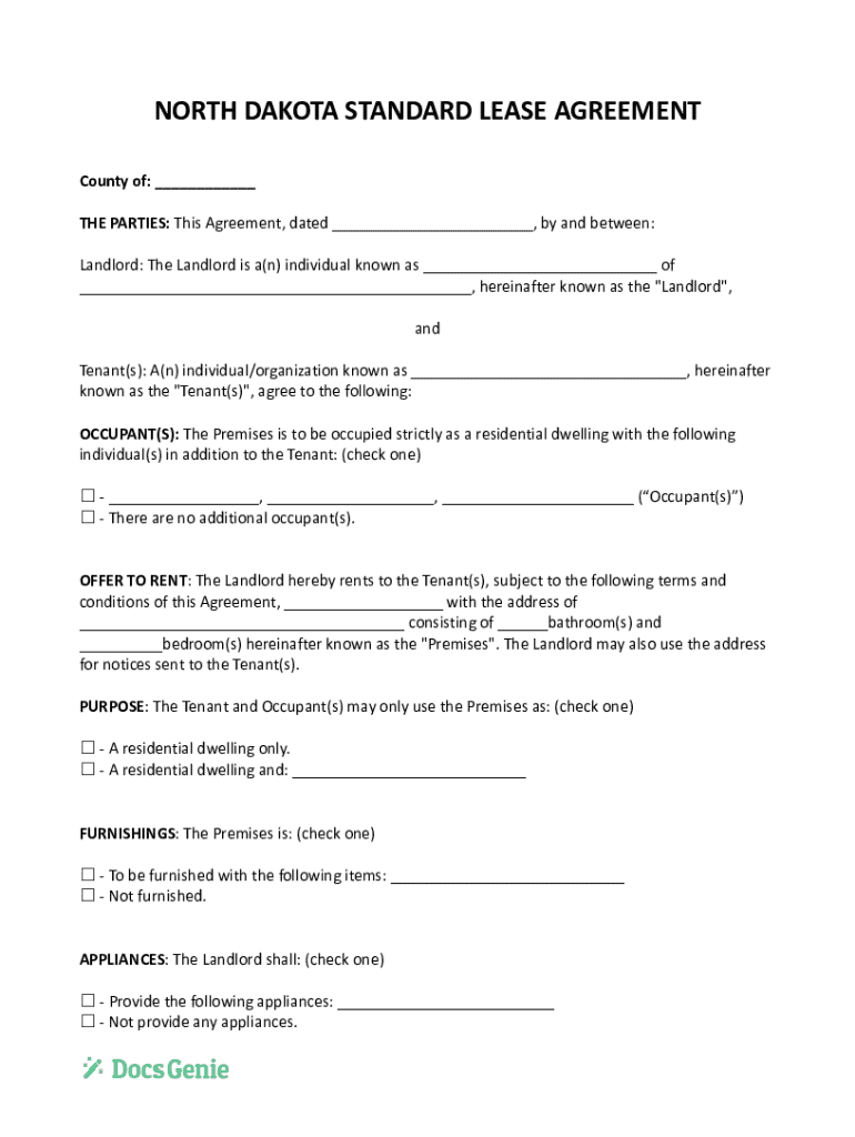 Get the free North Dakota Standard Lease Agreement