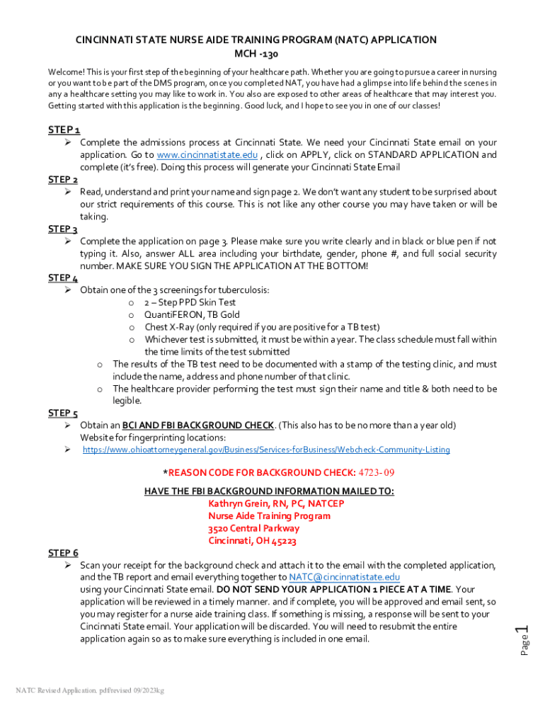 Get the free Cincinnati State Nurse Aide Training Program (natc) Application