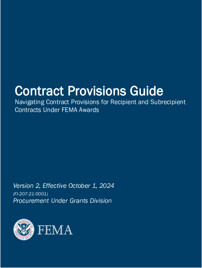 Contract Provisions GuideNavigating Contract Provisions for Recipient and Subrecipient Contracts Under FEMA AwardsVersion 2, Effective October 1, 2024 (FI207210001)Procurement Under Grants DivisionContract