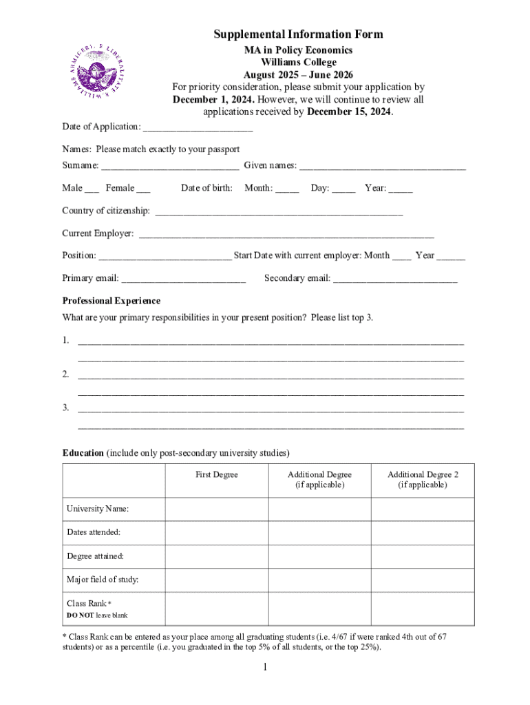 Get the free Supplemental Information Form - cde williams