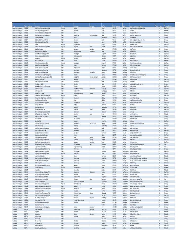 City/Town VirginiaEircode/Postal code A82 Y058County Co. CavanOwner(s) as it appears on RegisterCorofinV95 ET35Co. ClareJude Neylon20PartnershipDoolinV95 KP99Co. ClarePat and Joan O\'Connor100Sole TraderKilkeeV15 YV59Co. ClareGreen Acres Ventures Limited41CompanyDoorasMountshannonV94 V638Co. ClareThomas Bottcher90Company4 starBallaghalineDoolinV95 HX25Co. ClareDoolin Camping and Caravan Park Limited99CompanyBlarney Caravan and