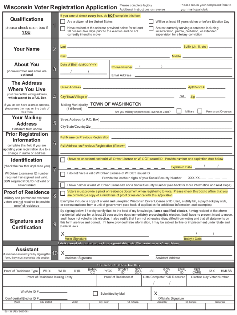 Anyone who wishes to vote in Wisconsin and is a U.S. citizen, a resident of Wisconsin, and at least 18 years old must file a voter registration application.