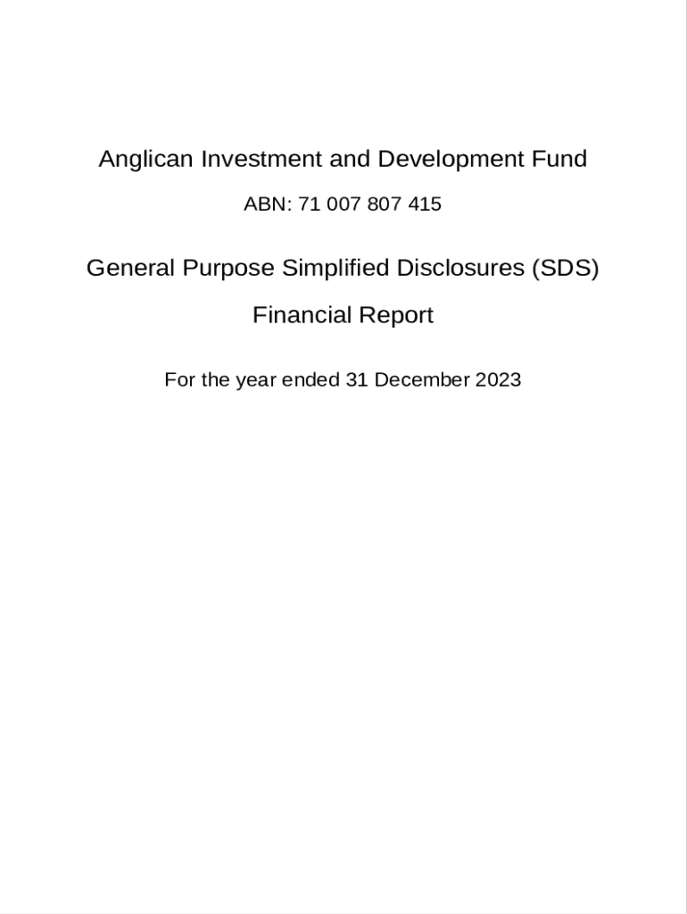 Financial report for the Anglican Investment and Development Fund for the year ended 31 December 2023, detailing comprehensive income, financial position, changes in equity, cash flows, and accompanying notes.