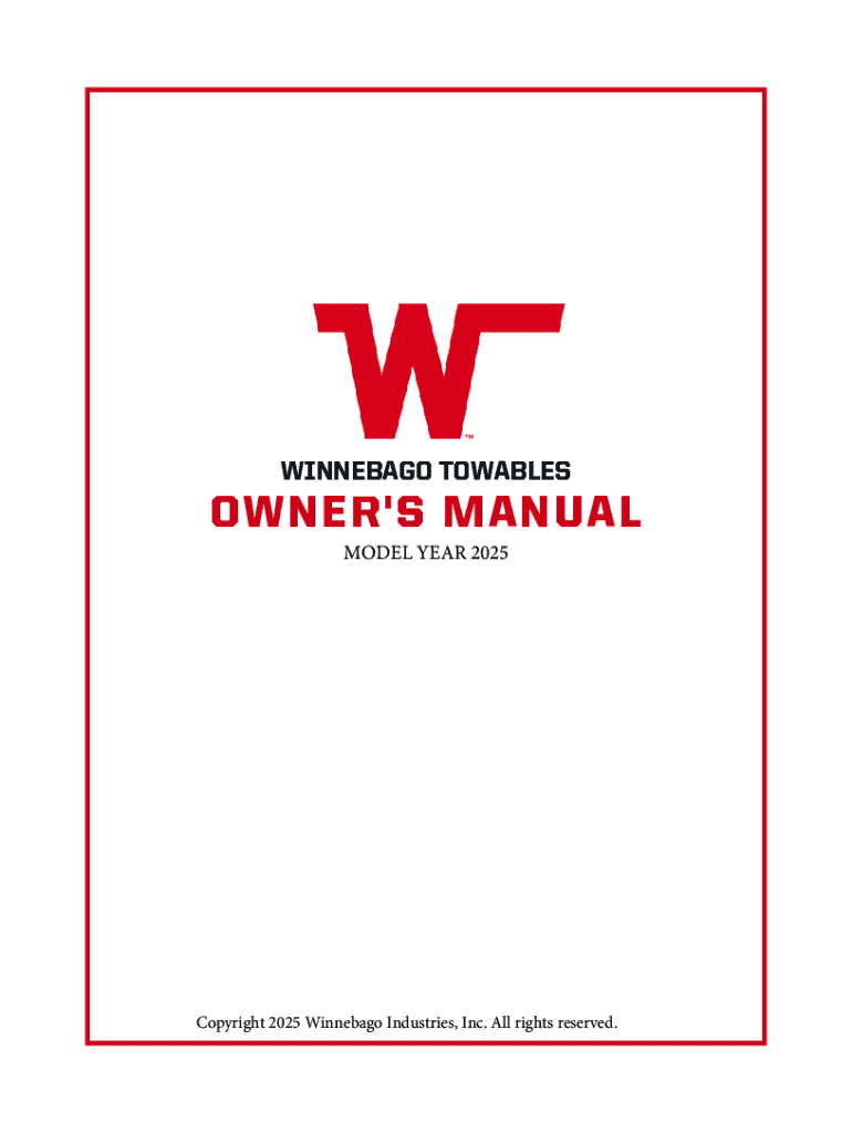This owner\'s manual serves as a comprehensive guide for the operation, maintenance, and care of Winnebago Towables travel trailers for the year 2025. It includes essential safety information, a detailed description of features, troubleshooting tips, and maintenance schedules to ensure optimal performance and safety during use.