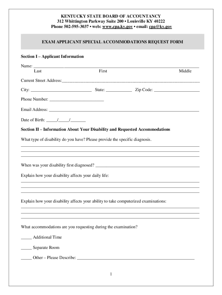 Get the free Exam Applicant Special Accommodations Request Form - cpa ky