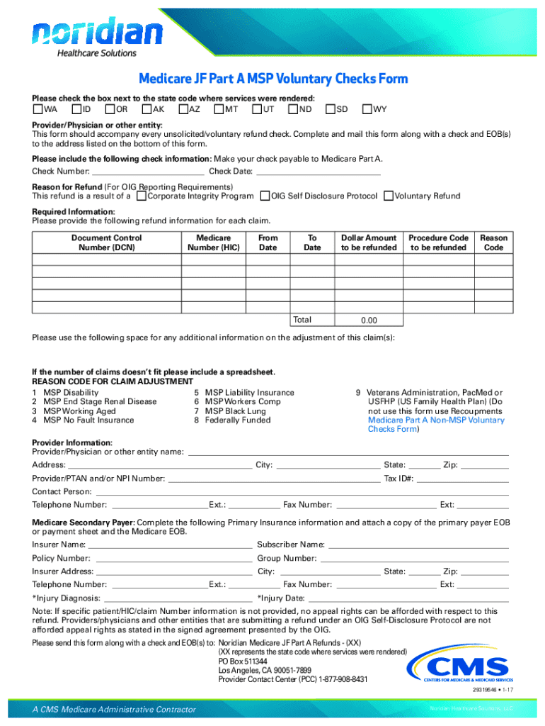 Get the free Medicare Jf Part a Msp Voluntary Checks Form