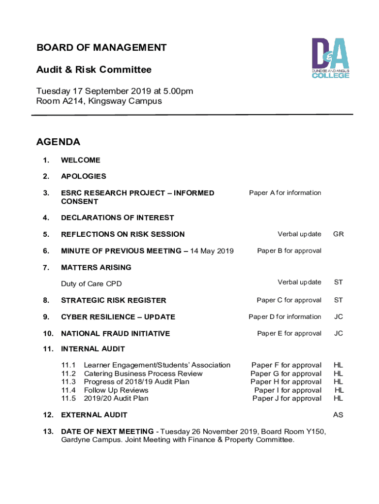 Get the free Audit & Risk Committee Minutes - dundeeandangus ac