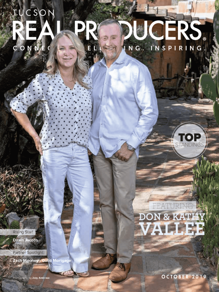 TUCSONC O N N E C T I N G .E L E VAT I N G .I N S P I R I N G .TOP STANDINGSFEATURINGDON & KATHY Rising Star! Dawn JacobsVALLEEPartner Spotlight: Zach Mooney Guild MortgagePhotography by Joey AmbroseOCTOBER 20192 October 2019www.realproducersmag.com 3TAB LE OFCONTENTS 08Publishers Note More Than a REALTOR...16Event Recap Sizzling Summer Social10122026Partner Spotlight Zach MooneyMaking A Difference Pam RuggeroliRising Star! Dawn JacobsFeaturing Don