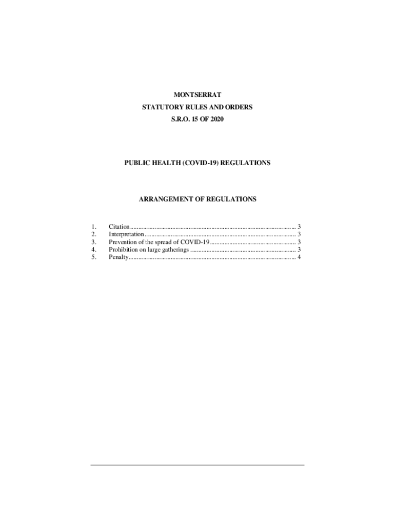Regulations made by the Governor of Montserrat to prevent the spread of COVID-19, including prohibitions on large gatherings and penalties for violations.