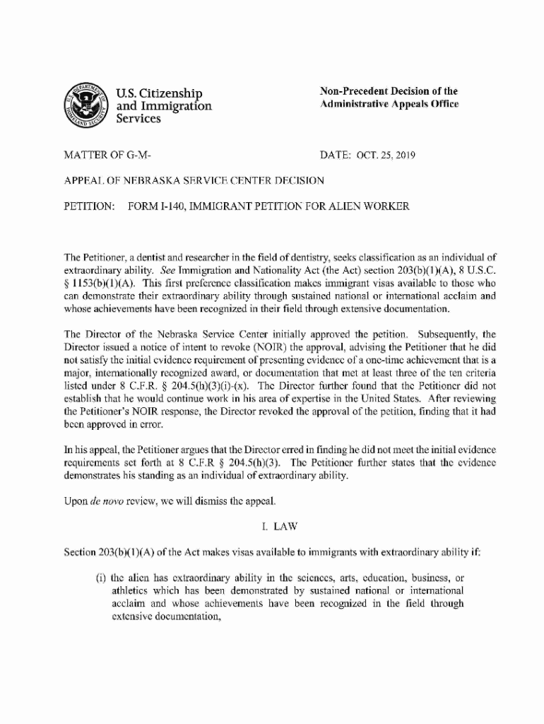 Get the free Non-precedent Decision of the Administrative Appeals Office