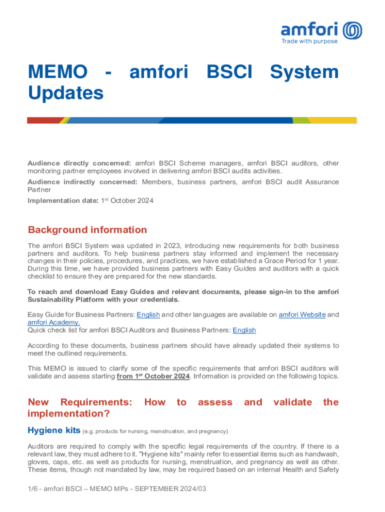 Get the free Amfori Bsci System Updates Memo