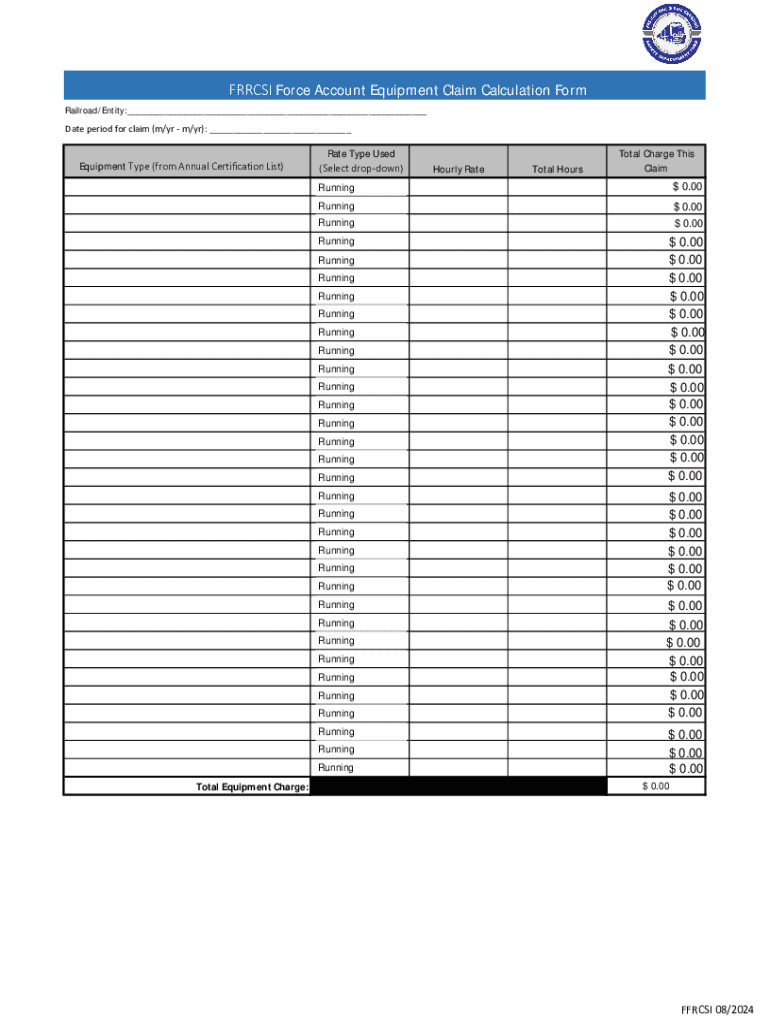 Get the free Frrcsi Force Account Equipment Claim Calculation Form