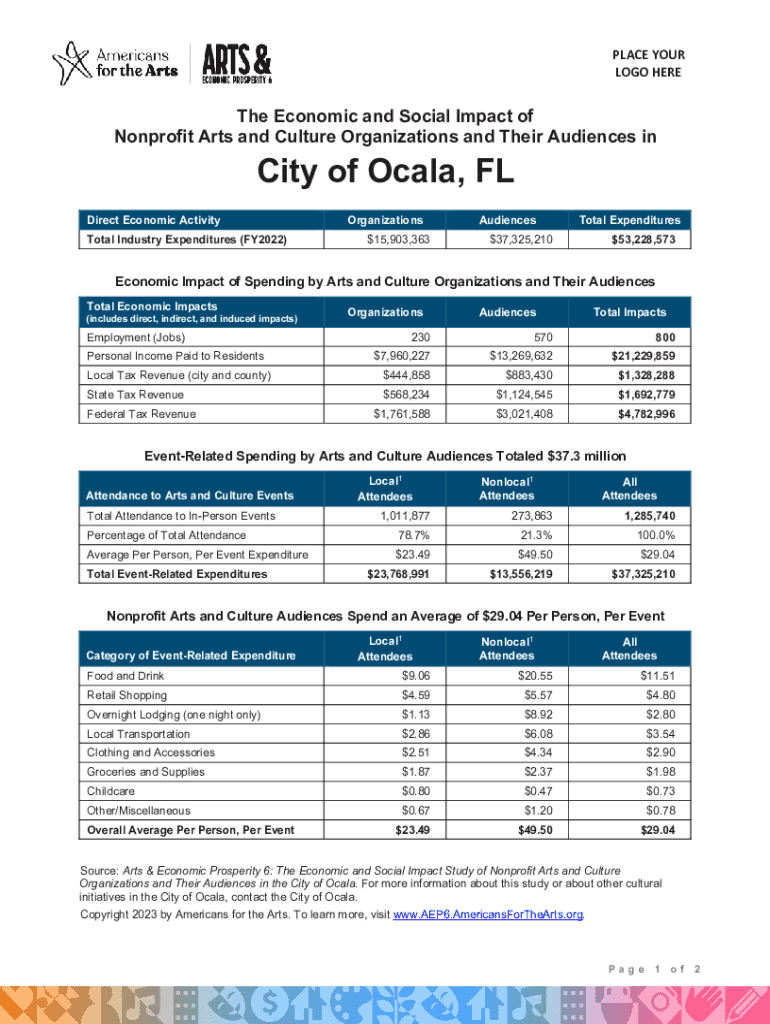 PLACE YOUR LOGO HEREThe Economic and Social Impact of Nonprofit Arts and Culture Organizations and Their Audiences inCity of Ocala, FLDirect Economic Activity Total Industry Expenditures (FY2022)Organizations