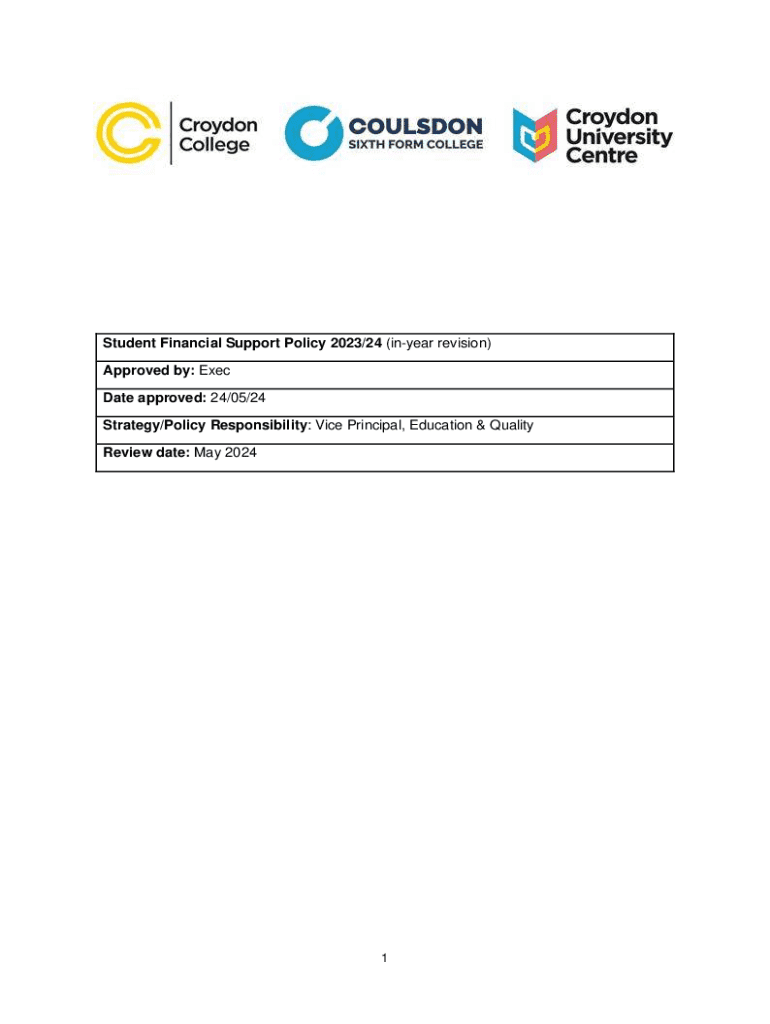 Get the free Student Financial Support Policy 2023/24 - croydon ac