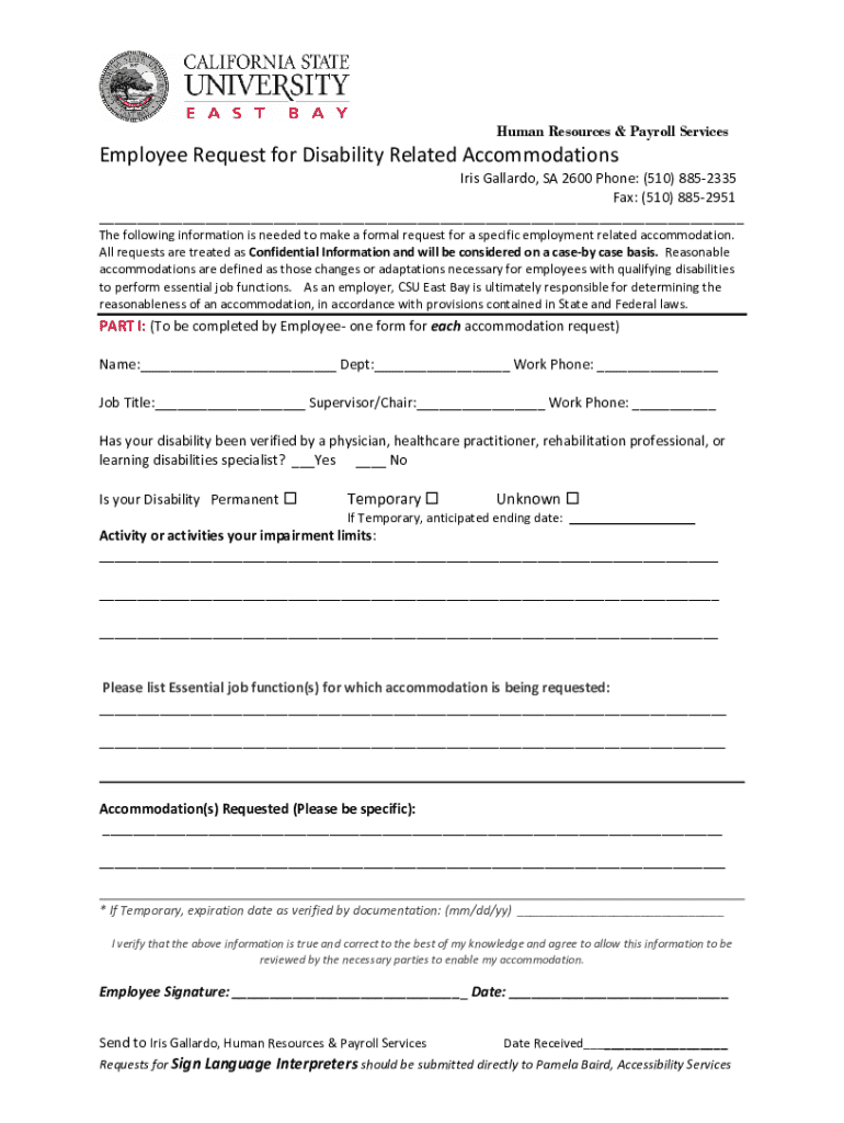Employees who are experiencing disabilities that affect their work performance or require accommodations to their job duties are required to file an employee request for disability.
