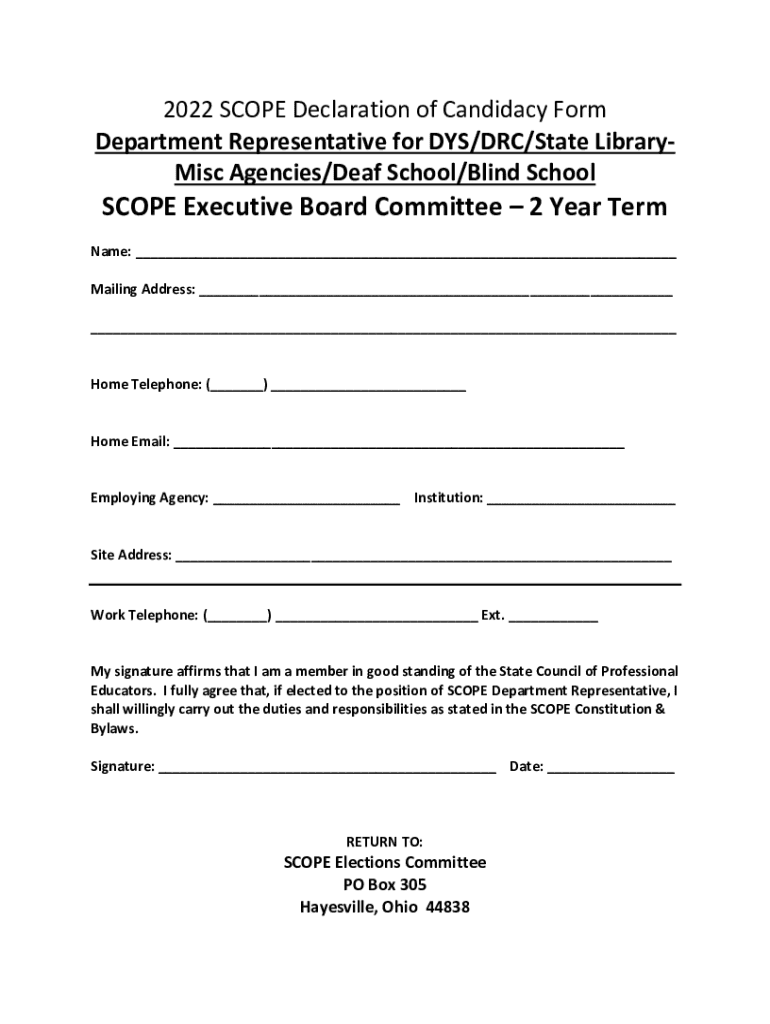 Get the free 2022 Scope Declaration of Candidacy Form