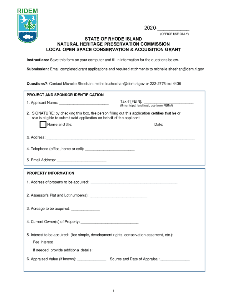 Get the free Local Open Space Conservation & Acquisition Grant Application - dem ri