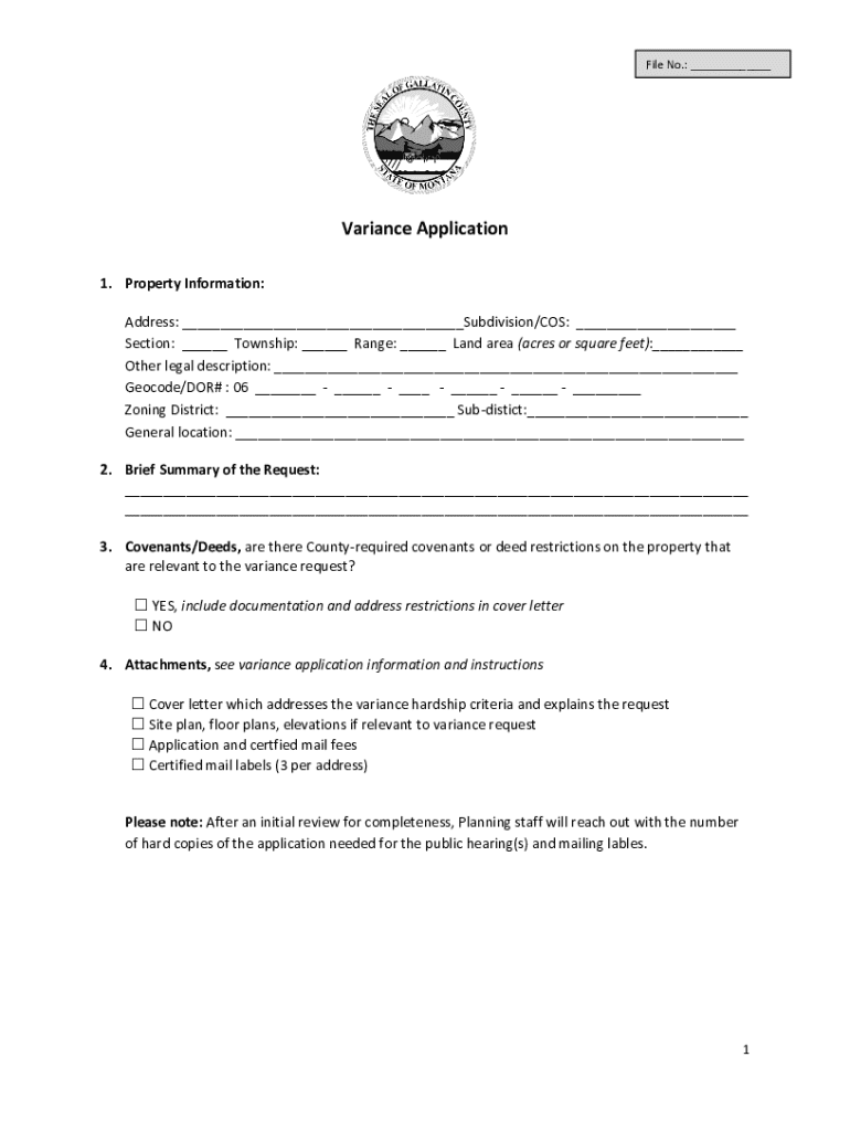 A variance application is a request submitted to a governing authority seeking permission to deviate from specific zoning regulations or standards set forth in local laws.