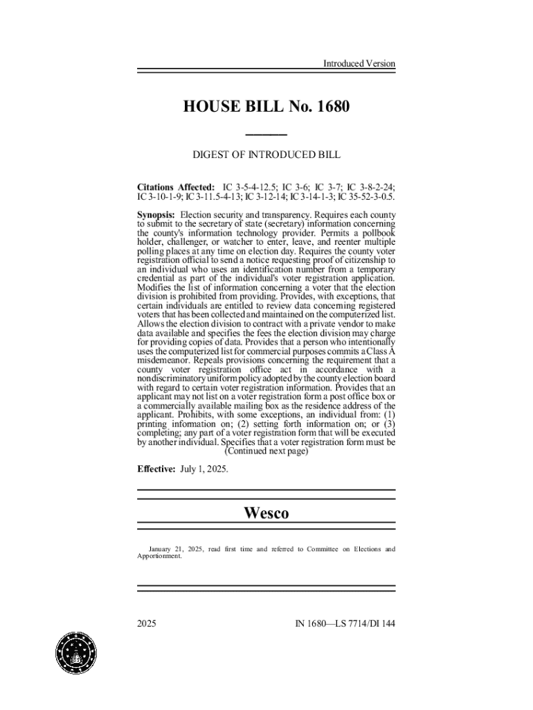 Get the free House Bill No. 1680