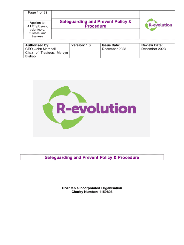 Get the free Safeguarding and Prevent Policy & Procedure