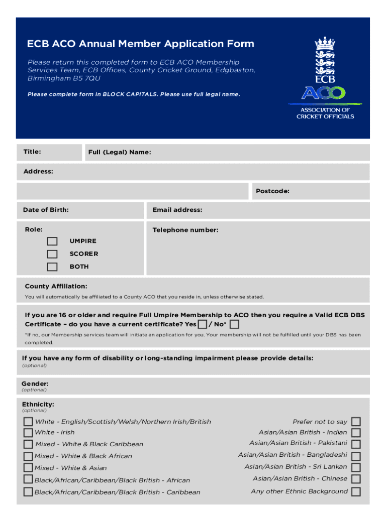 Obtain the official ECB ACO Annual Member form.