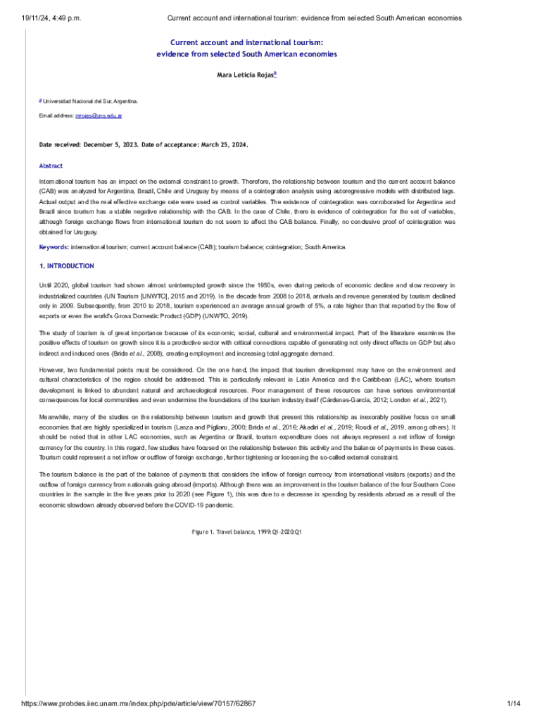 19/11/24, 4:49 p.m.Current account and international tourism: evidence from selected South American economiesCurrent account and international tourism: evidence from selected South American economies