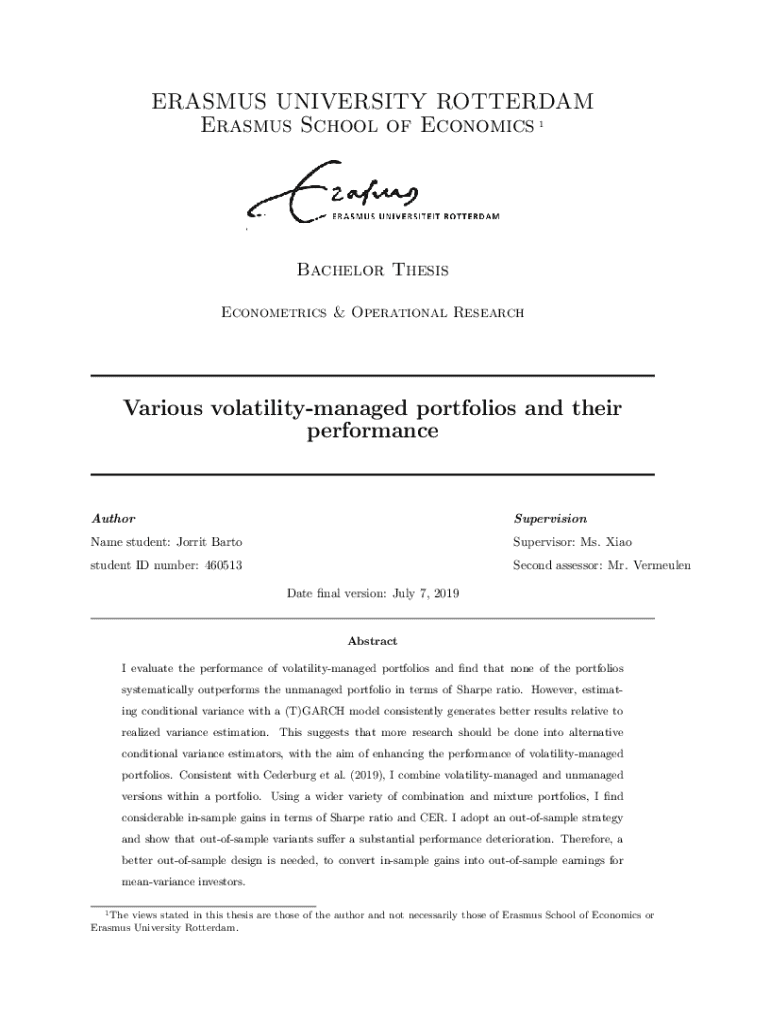 This thesis evaluates the performance of volatility-managed portfolios compared to unmanaged portfolios using statistical models to estimate conditional variance. It explores the efficiency of various