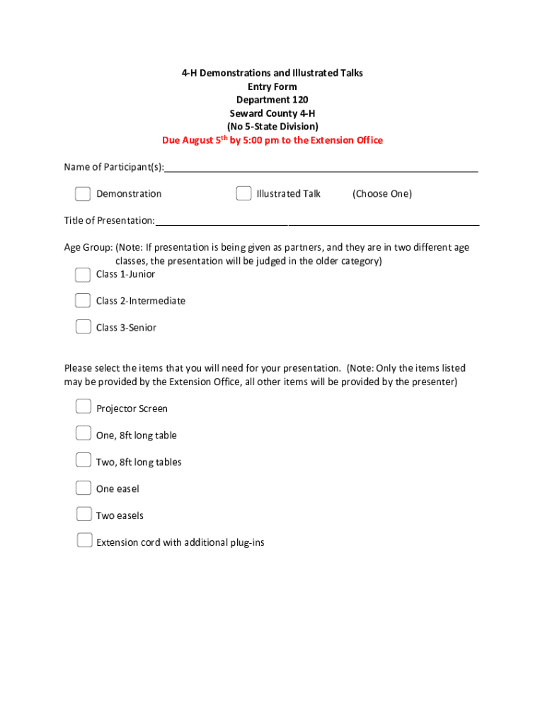 Get the free 4-h Demonstrations and Illustrated Talks Entry Form