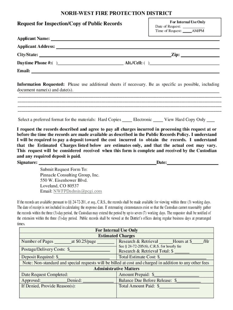 Get the free Request for Inspection/copy of Public Records