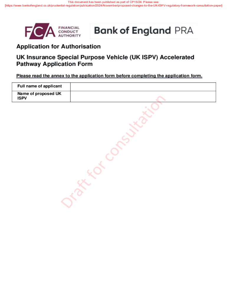 Este formulario es parte del proceso de autorización para la creación de un Vehículo Especial de Propósito de Seguros en el Reino Unido (UK ISPV). El formulario recopila información esencial