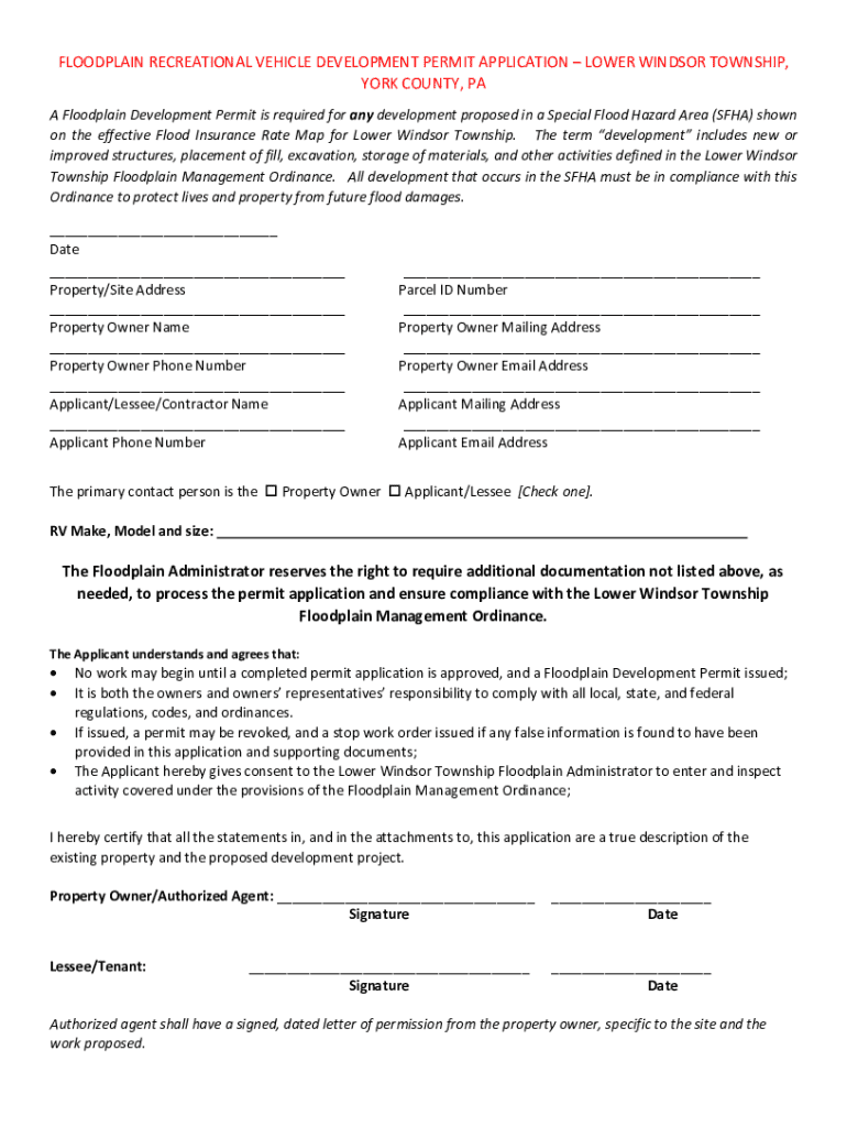 Get the free Floodplain Recreational Vehicle Development Permit Application