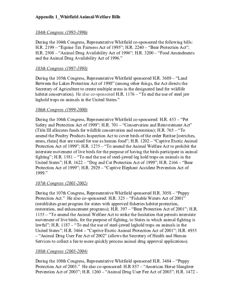 Fill out your appendix 1whitfield animal-welfare bills online with pdfFiller!
