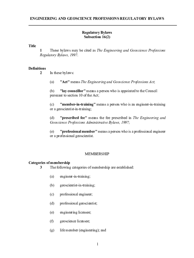Get the free Engineering and Geoscience Professions Regulatory Bylaws