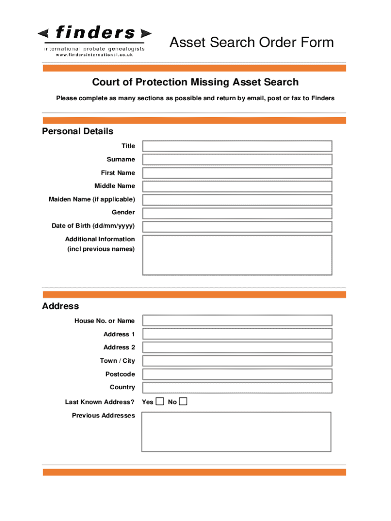 Get the free Asset Search Order Form