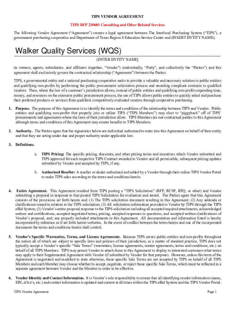 Get the free Tips Vendor Agreement
