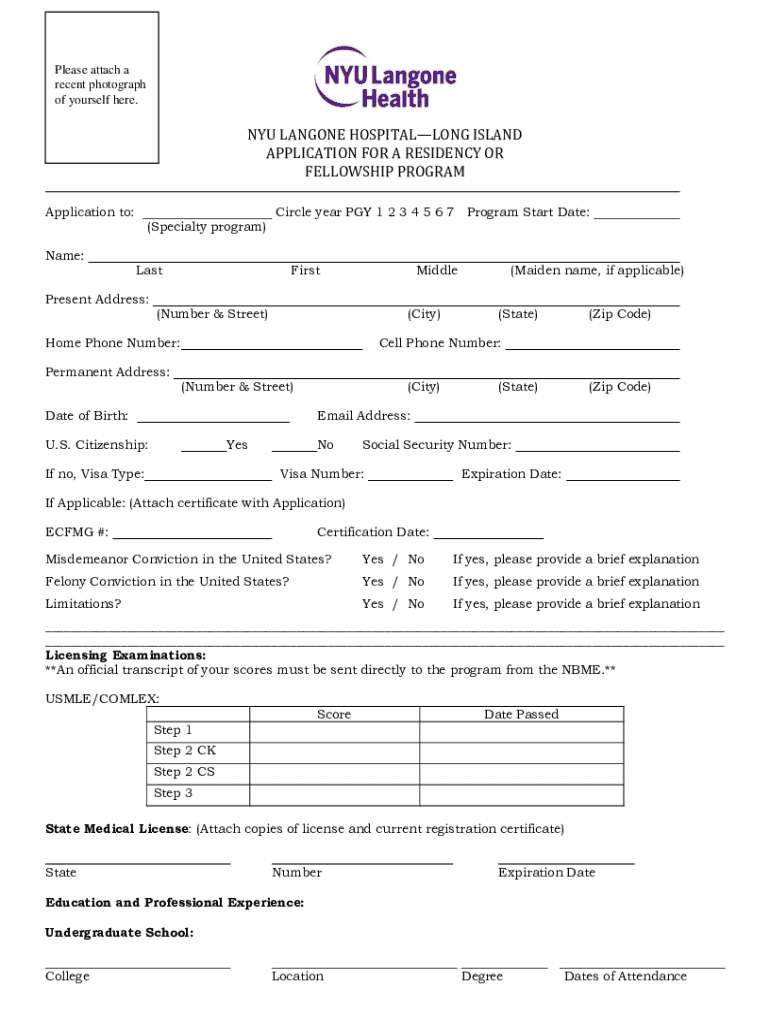 Get the free Nyu Langone Hospital Residency or Fellowship Application