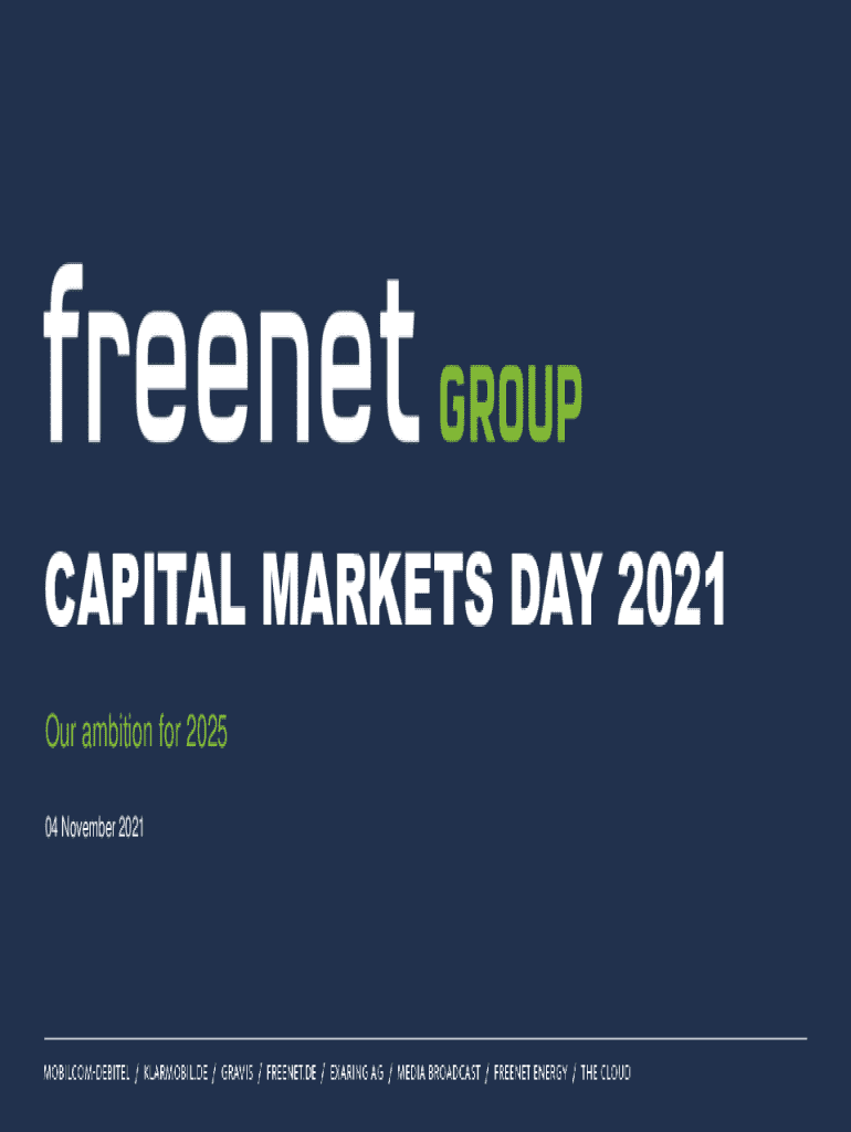 CAPITAL MARKETS DAY 2021 Our ambition for 2025 04 November 2021CAUTIONARY STATEMENT This presentation contains forwardlooking statements which involve risks and uncertainties. The actual performance, results and timing of the business of freenet AG could differ materially from the expectations regarding performance, results and timing expressed in this presentation. These statements are subject to many risks and uncertainties, including an adverse development of global economic conditions, in...
