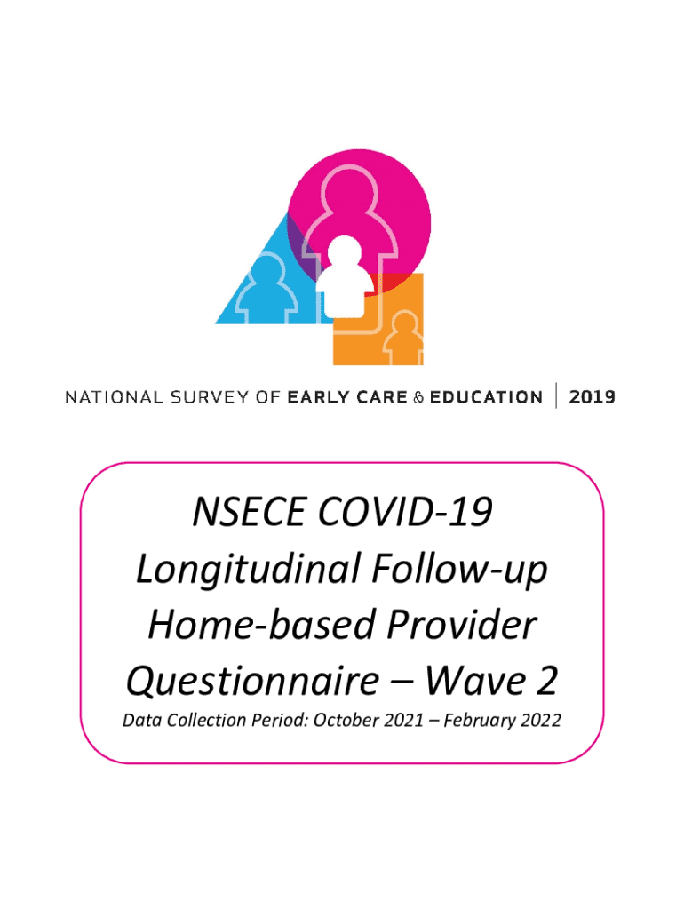 The NSECE COVID-19 longitudinal follow-up is a research initiative designed to collect ongoing data from participants who were involved in the National Survey of Early Care and Education (NSECE) regarding the impact of the COVID-19 pandemic on early care and education systems.